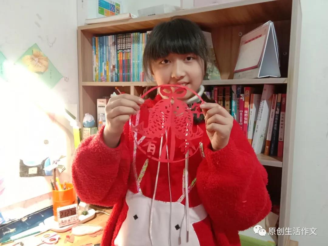 我找出了在乐清少儿编程培训奖励过来的蜡纸、剪刀、美工刀等工具,开始创作“鲤鱼窗花”。我先拿出了一张大红的蜡纸,小心翼翼地将它对折,再用铅笔在上面画出图案线条,两只手在纸上不停地游移。在我的手下,鲤鱼、花纹、铃铛,活灵活现地展现在纸上。那鲤鱼,还瞪着眼睛呢,真可爱!
